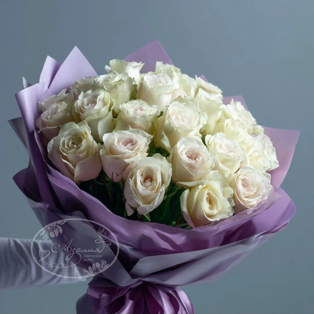 Мягкий и тёплый букет, навеянный атмосферой вечернего покоя. Белые розы создают уютное и гармоничное настроение. Идеален для романтического жеста или признательности.