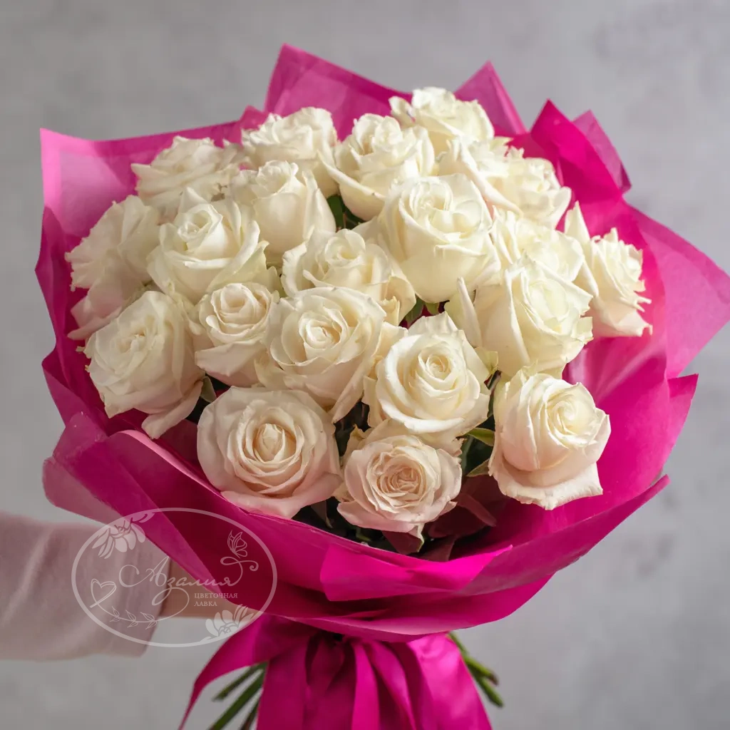 Композиция, отражающая искренность, нежность и заботу. Белые розы в этом букете говорят без слов — о чувствах, которые не нуждаются в объяснении. Универсальный выбор для самых разных поводов.