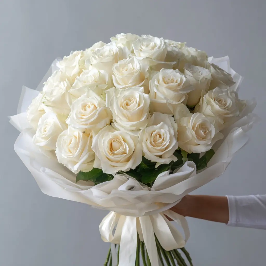 Белые розы «Снежная акварель»
