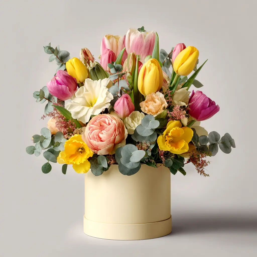 ГлавнаяКаталогКомпозицииВ шляпной коробкеКомпозиция «Весеннее вдохновение»