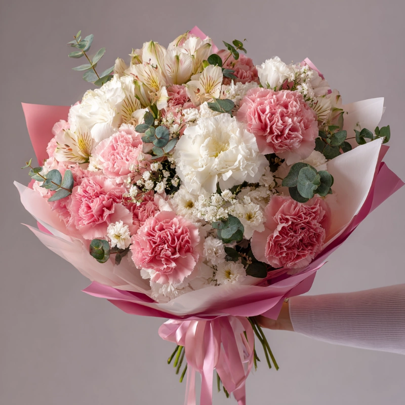 Букет с гвоздиками «Розовый каприз»