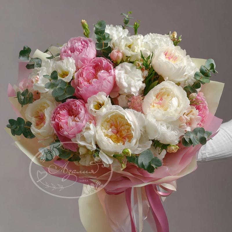 Нежный розовый букет, создающий ощущение детской мечты и лёгкости. Подойдёт для молодых девушек и романтичных персон.