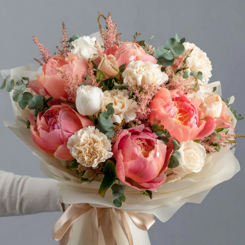 ГлавнаяКаталогБукетыПионыБукет с пионами «Медовый этюд»