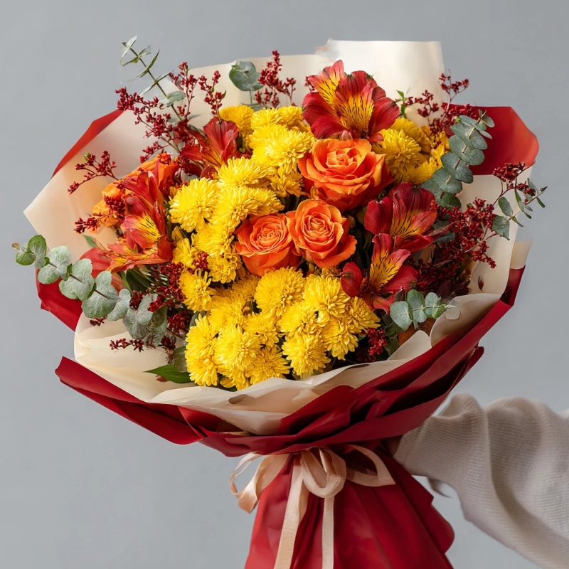 ГлавнаяКаталогБукетыХризантемыБукет с хризантемами «Тёплый взгляд»