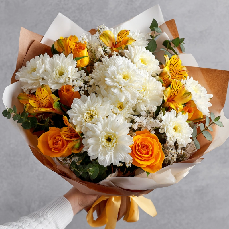 Художественная композиция, где каждая хризантема звучит своей нотой. Букет с характером, гармонией и стилем. Подойдёт для подарков учителям, коллегам или любимым.
