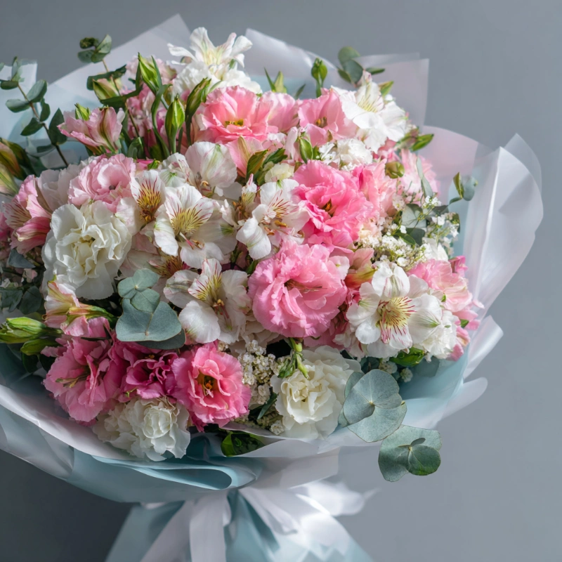 Свежесть и прохлада раннего утра — в каждом лепестке. Эустомы создают ощущение чистоты и спокойствия, которое хочется подарить близким. Универсальный букет с мягким посылом.