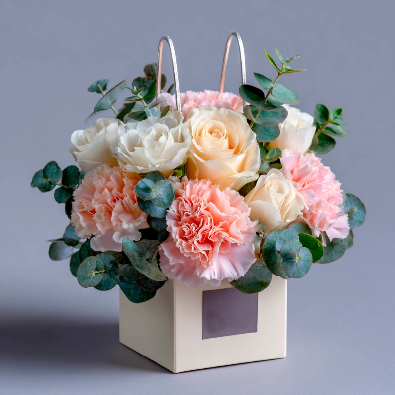 Композиция в сумочке «Цветочный комплимент»