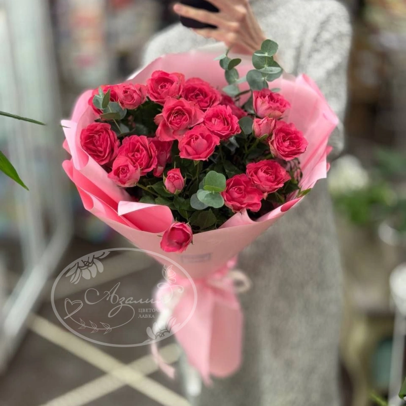 Кустовые розы с эвкалиптом