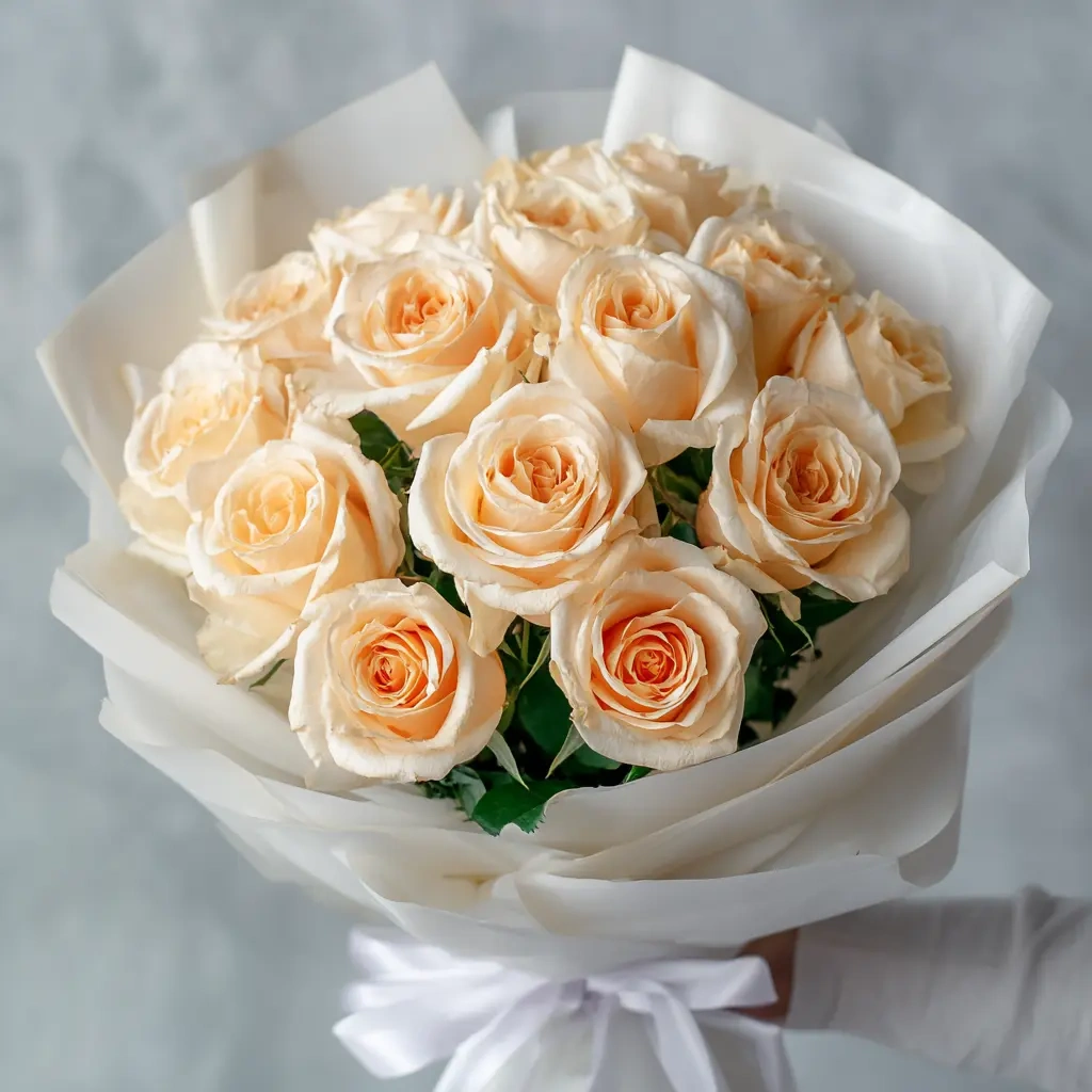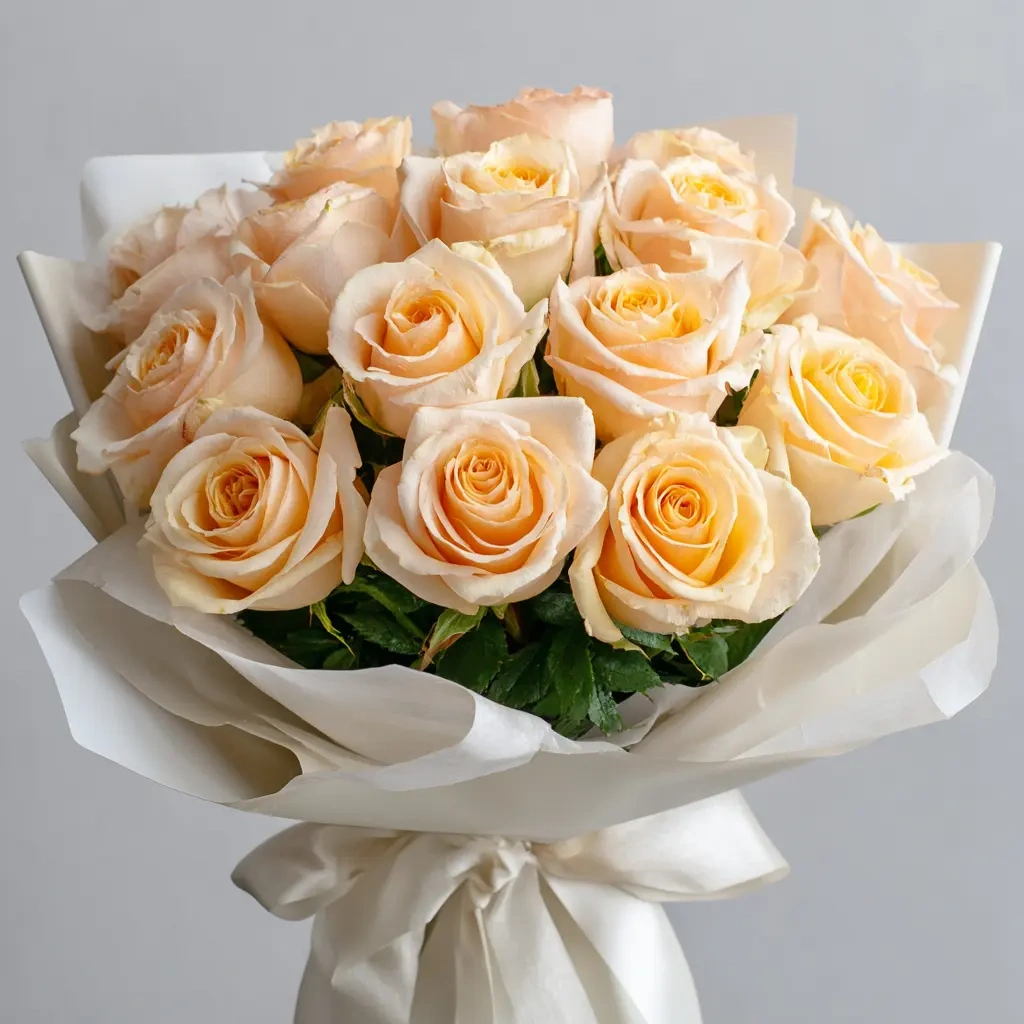 ГлавнаяКаталогРозы15 роз15 персиковых эквадорских роз