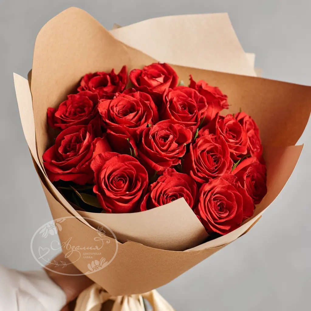 Компактный, но выразительный букет с 15 алыми розами из Кении. Их бархатистые бутоны и насыщенный оттенок делают букет запоминающимся акцентом на любом празднике.
