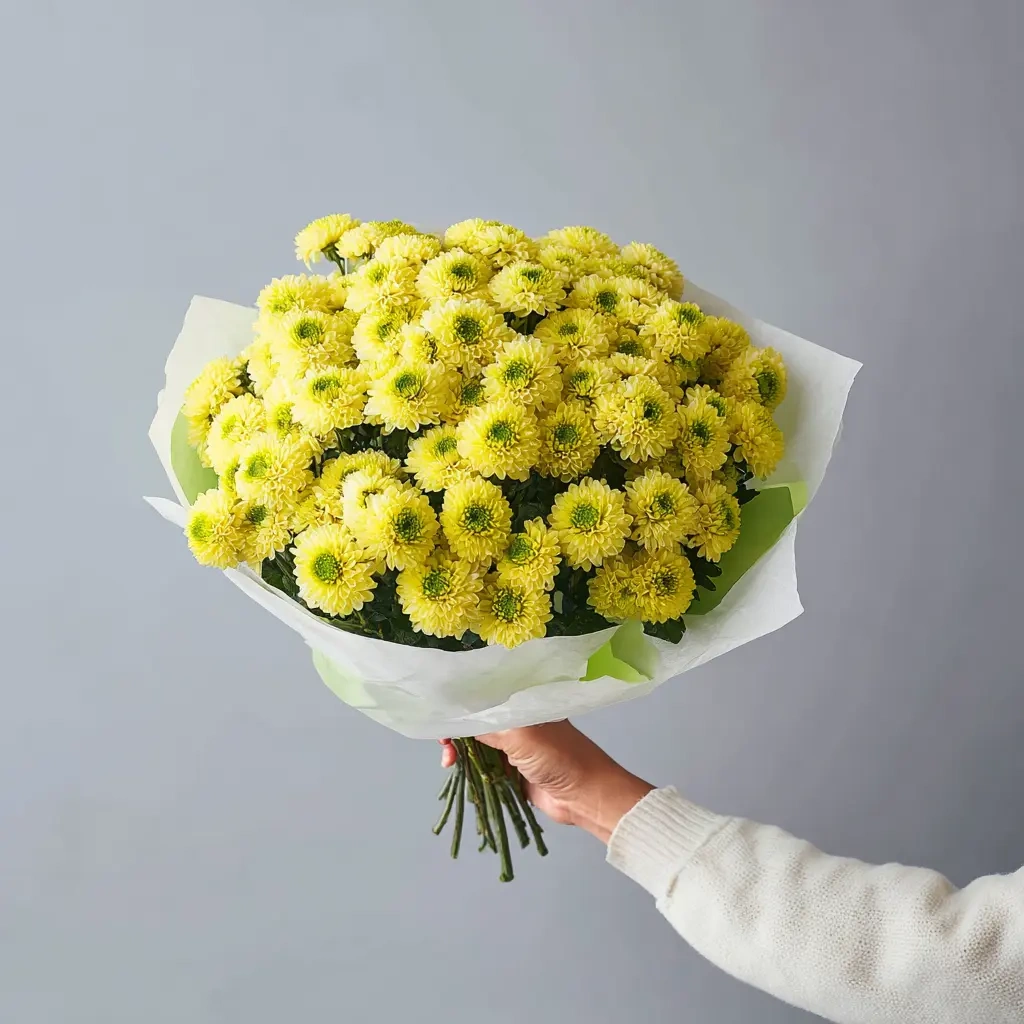 ГлавнаяКаталогБукетыМонобукет из хризантем «Солнечное касание»